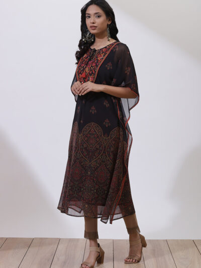Black Phool Collection Kurta with Rice Stitch Embroidery