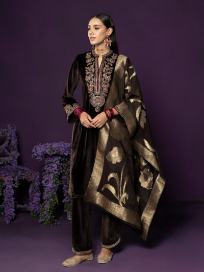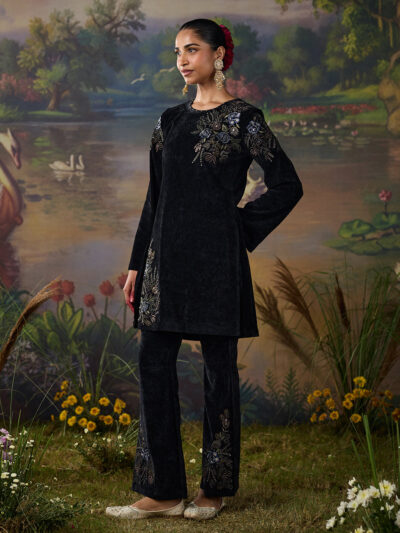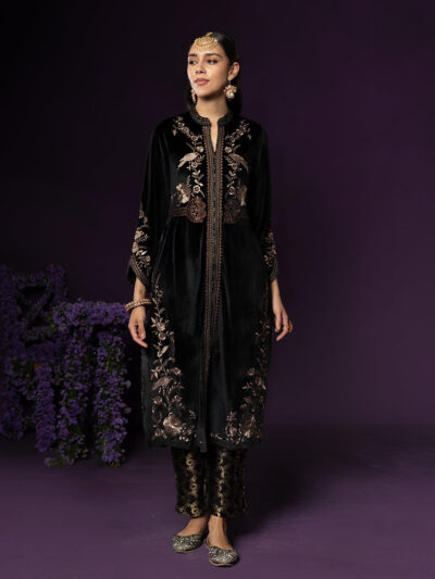Charcoal Black Embroidered Nargis Kurta Set with Black Palazzo