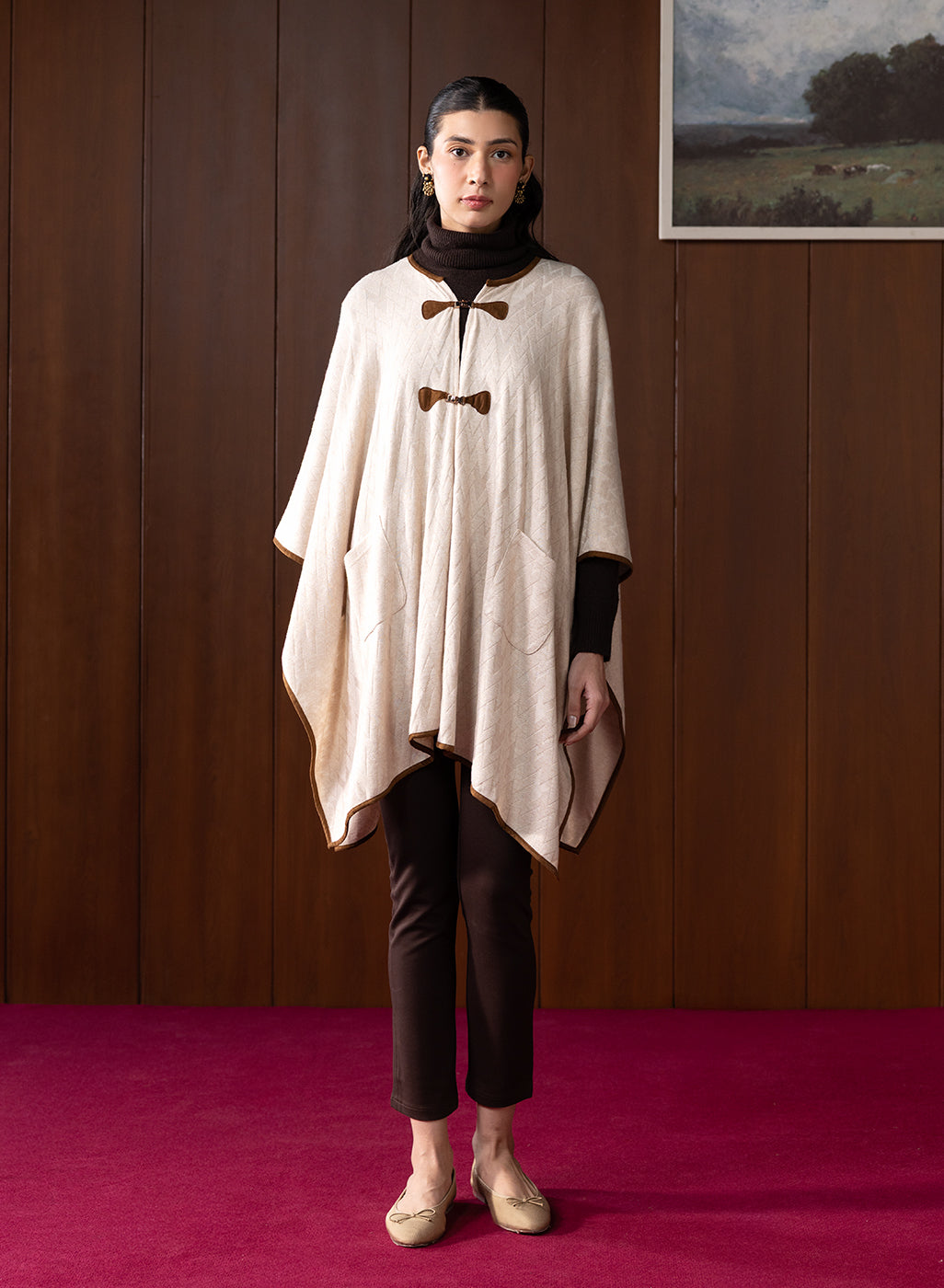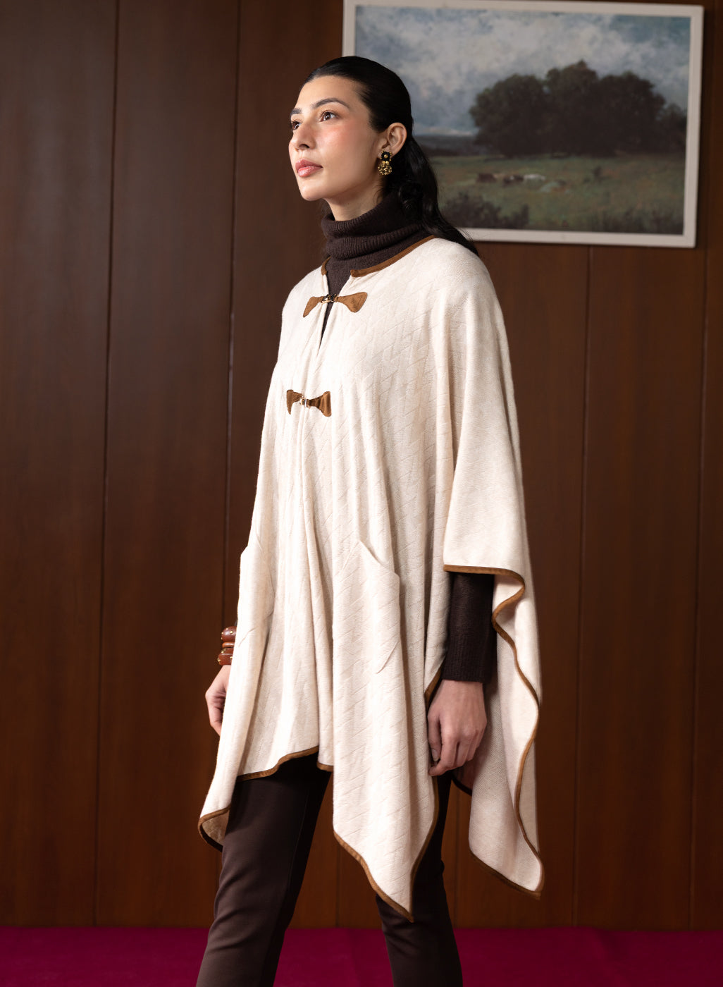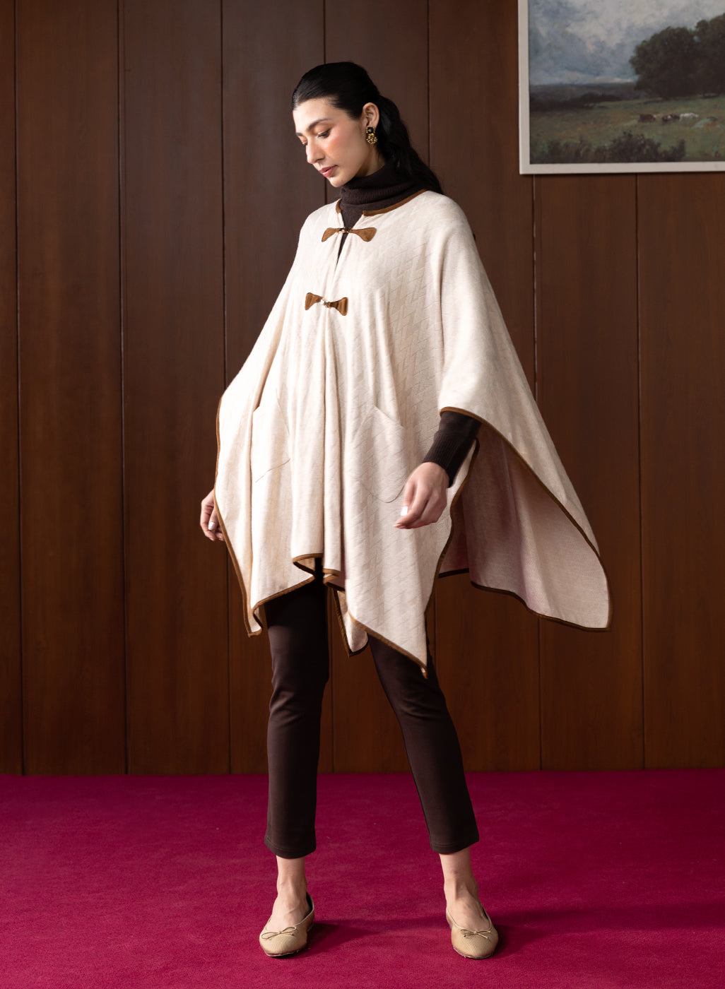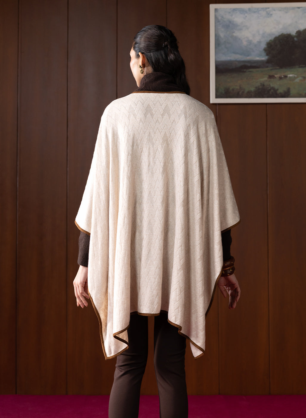 Chic, minimal, and oh-so-versatile! This ivory cape brings understated luxury to your wardrobe. The soft wool and fluid drape make it a timeless layer for cooler days.