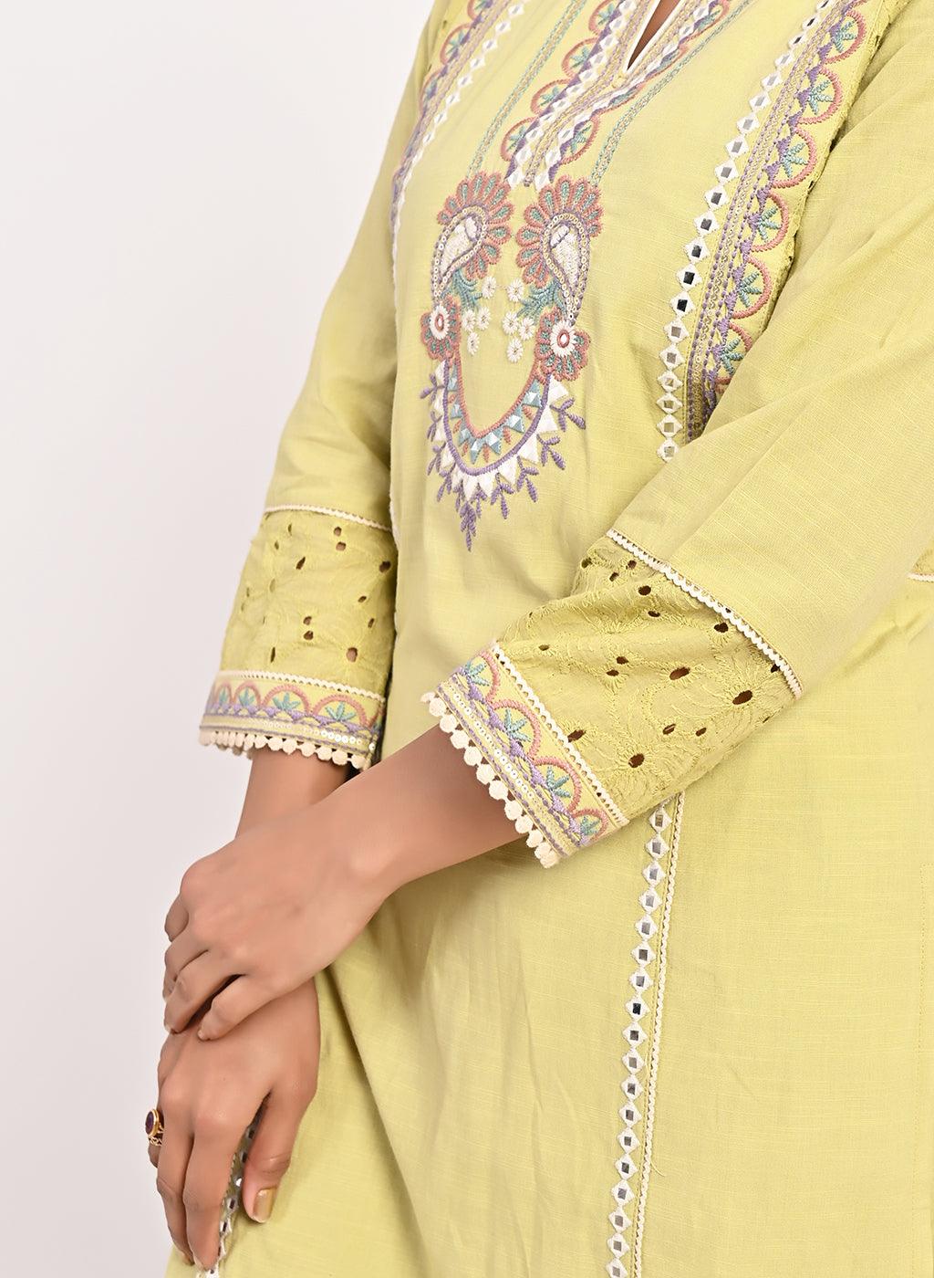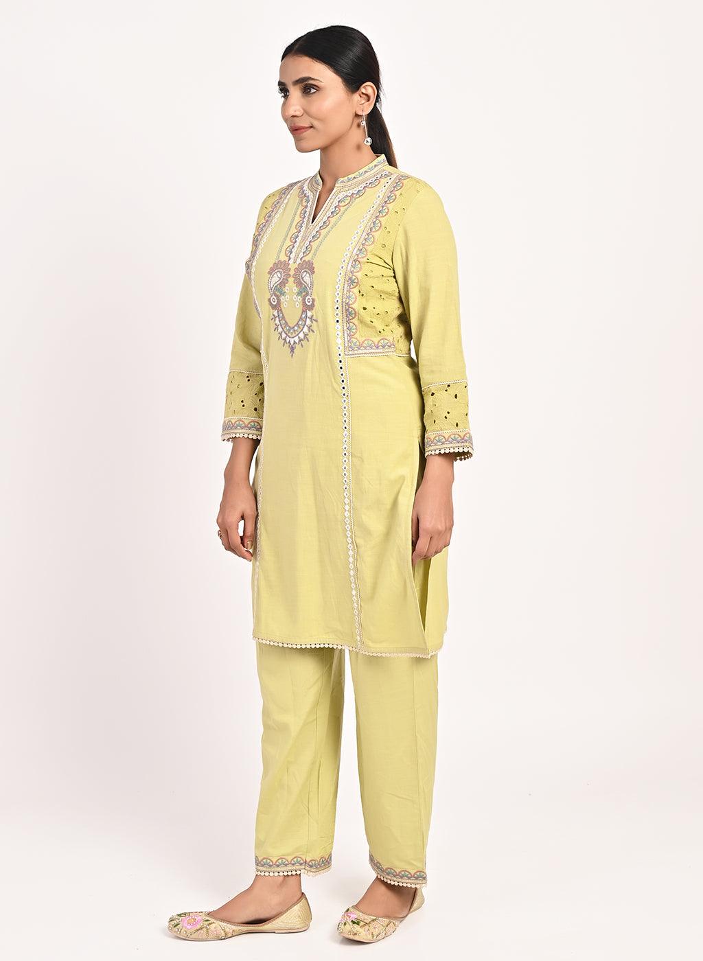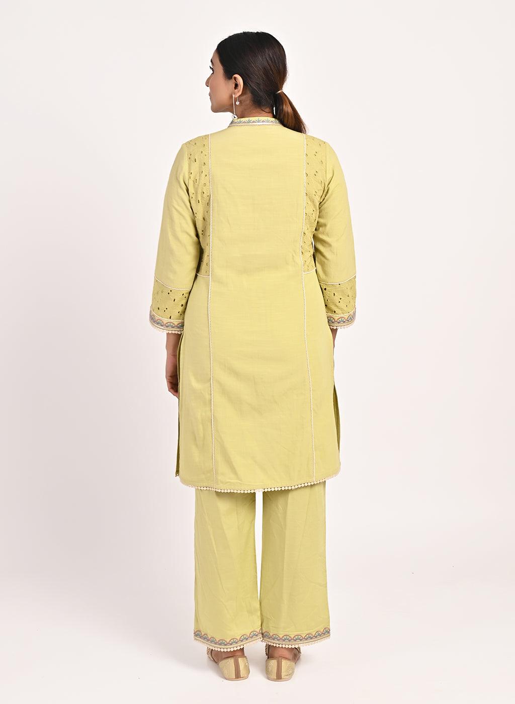 Light Green Schiffili Embroidered Cotton Co-ord Set