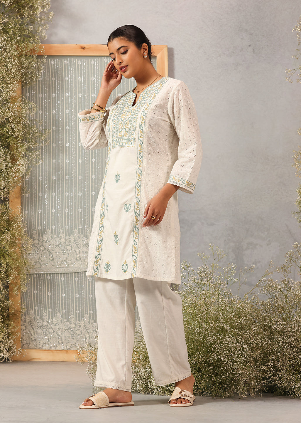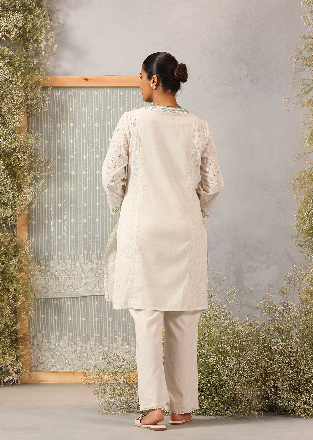 Pearl White Embroidered Nargis Kurta