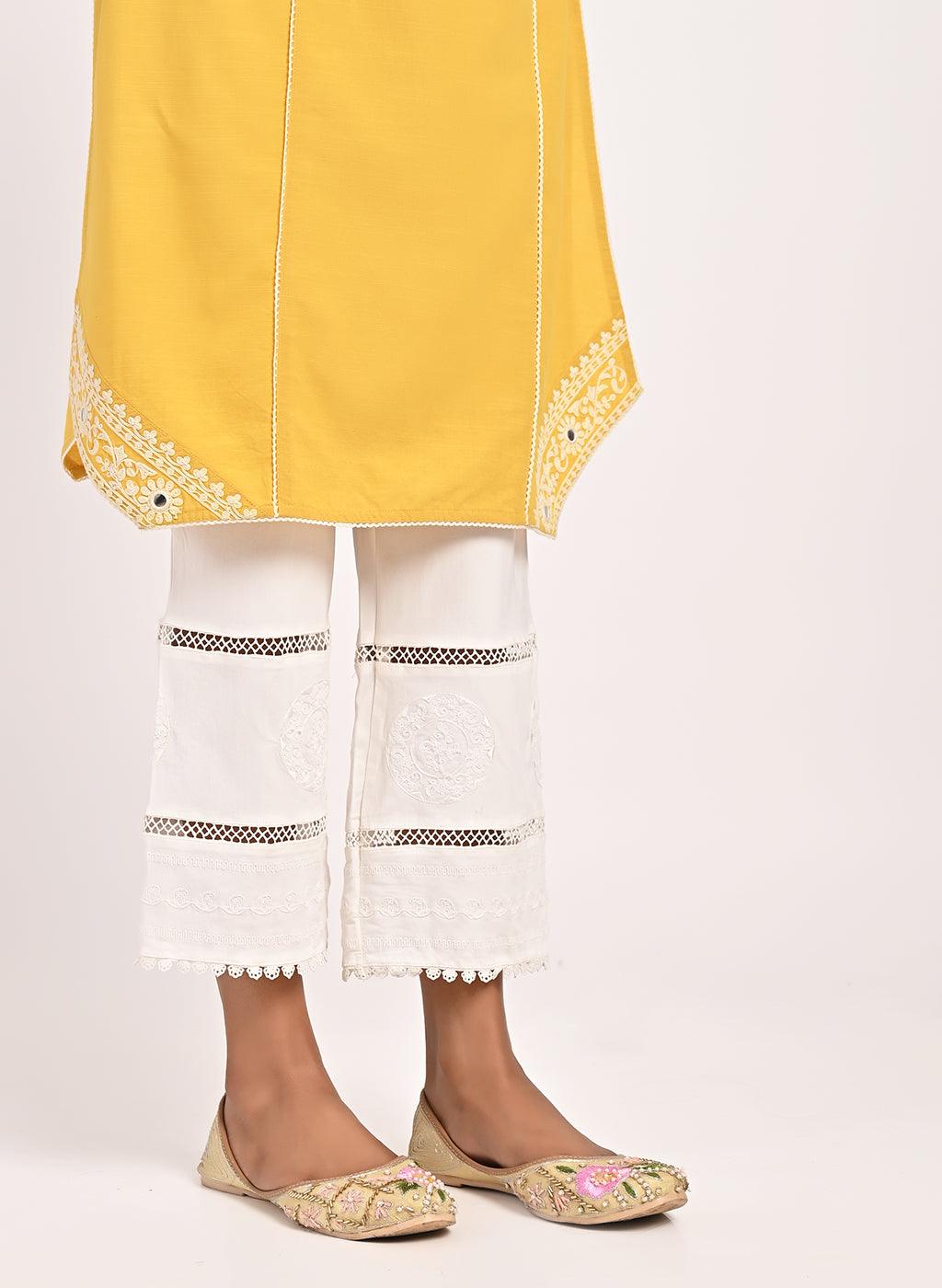 Get ready to steal the spotlight in this pretty daisy-yellow mid-length summer Kurti . With eye-catching embroidery and high-quality cotton, this dress is what grace and charm combined look like. Complete the look with the jewellery of your choice.