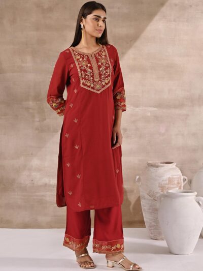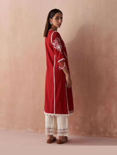 Red Alora Collection Kurta With Embroidery And Lace Detailing