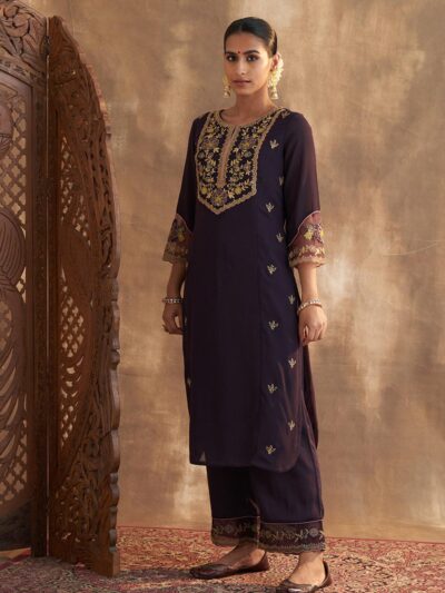 Purple Kurta Set With Embroidery