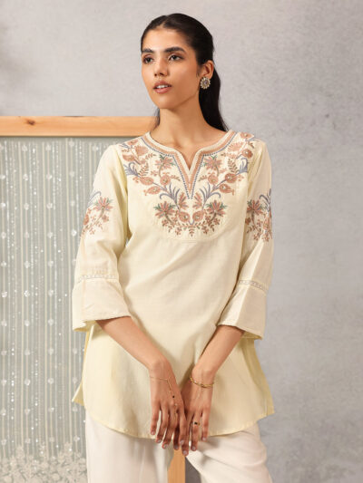 Yellow Cotton Kurti with Floral Embroidery